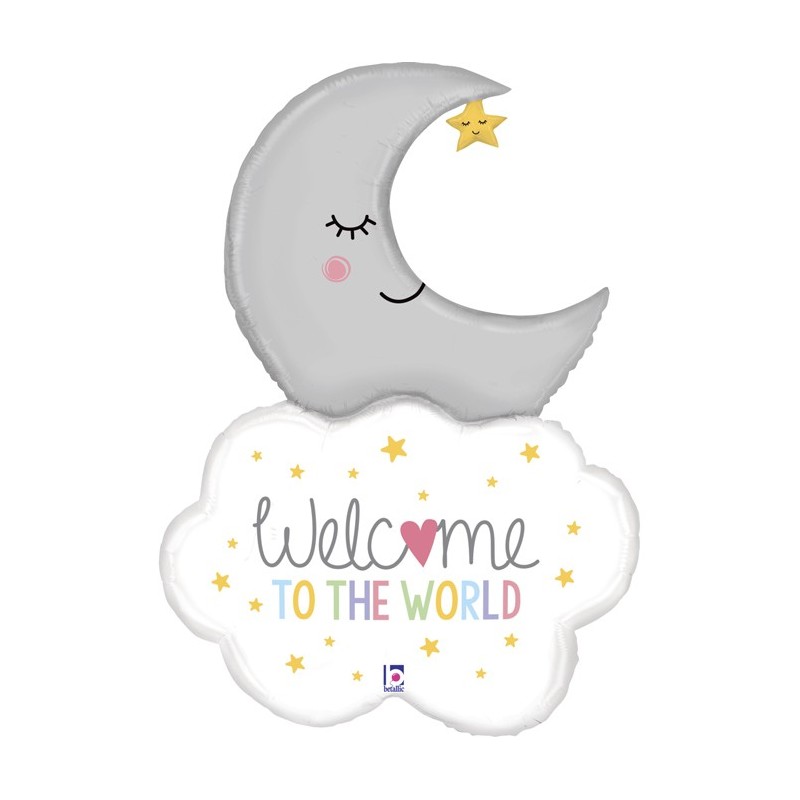 Μπαλόνι foil 42" 107cm σχέδιο συννεφάκι με φεγγάρι με μήνυμα Welcome To The World. Η τιμή αφορά το μπαλόνι ξεφούσκωτο.