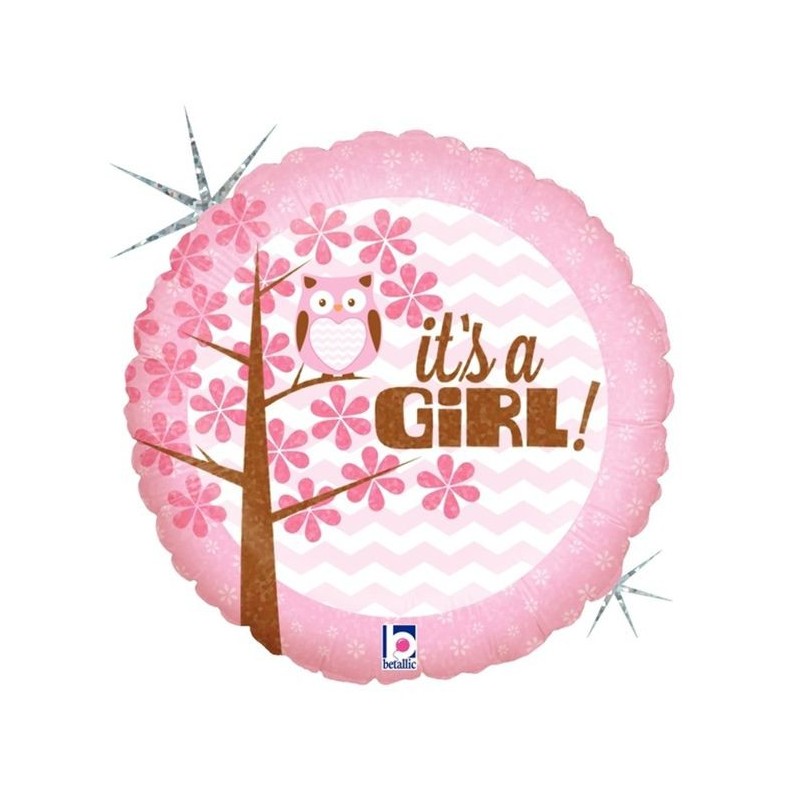 Μπαλόνι foil 18" 46cm με μήνυμα It's a Girl! Και θέμα κουκουβάγια ροζ. Η τιμή αφορά το μπαλόνι ξεφούσκωτο.
