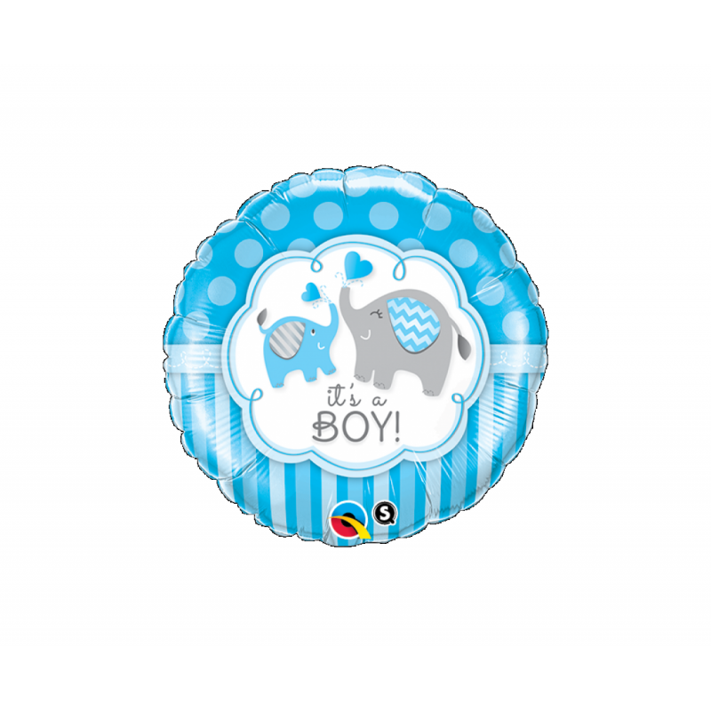 Μπαλόνι foil 18" 46cm με μήνυμα It's A Boy! Και θέμα ελέφαντες. Η τιμή αφορά το μπαλόνι ξεφούσκωτο.