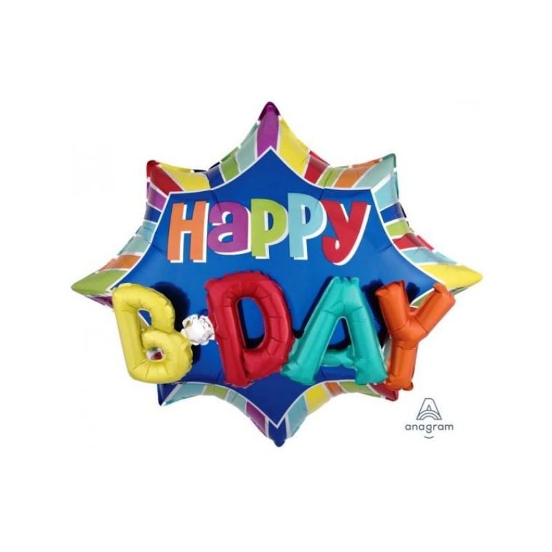 Μπαλόνι foil 35''x29'' 88x73cm με μήνυμα Happy B-Day. Η τιμή αφορά το μπαλόνι ξεφούσκωτο.