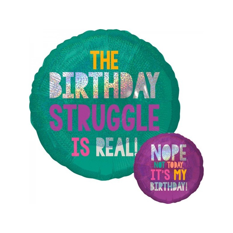 Μπαλόνι foil 18" 45cm διπλής όψης με μήνυμα The Birthday Struggle Is Real - Nope Not Today, It's My Birthday . Η τιμή αφορά το μπαλόνι ξεφούσκωτο.