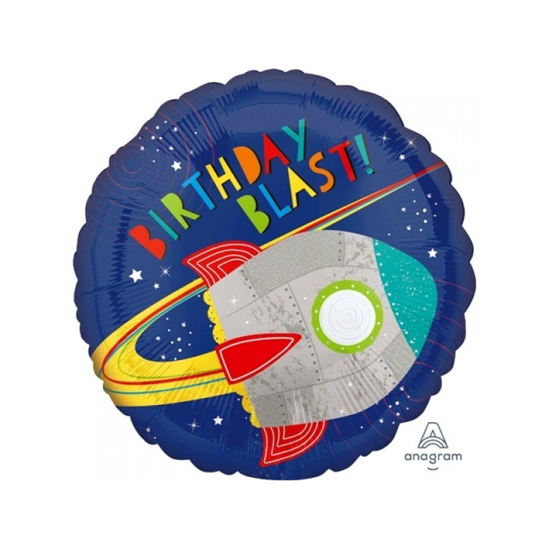 Μπαλόνι foil 17" 43cm με μήνυμα Birthday Blast και θέμα διαστημόπλοιο. Η τιμή αφορά το μπαλόνι ξεφούσκωτο.