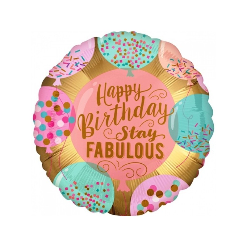 Μπαλόνι foil 18" 46cm με μήνυμα Happy Birthday Stay Fabulous. Η τιμή αφορά το μπαλόνι ξεφούσκωτο.