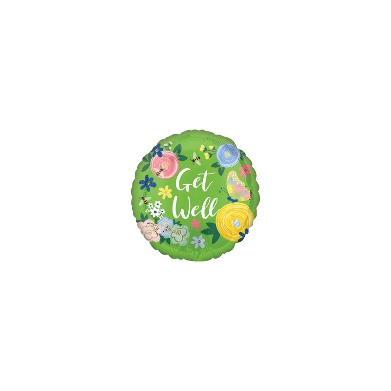 Μπαλόνι foil 17" 43cm με θέμα Πράσινο Φλοράλ και μήνυμα Get Well. Η τιμή αφορά το μπαλόνι ξεφούσκωτο.