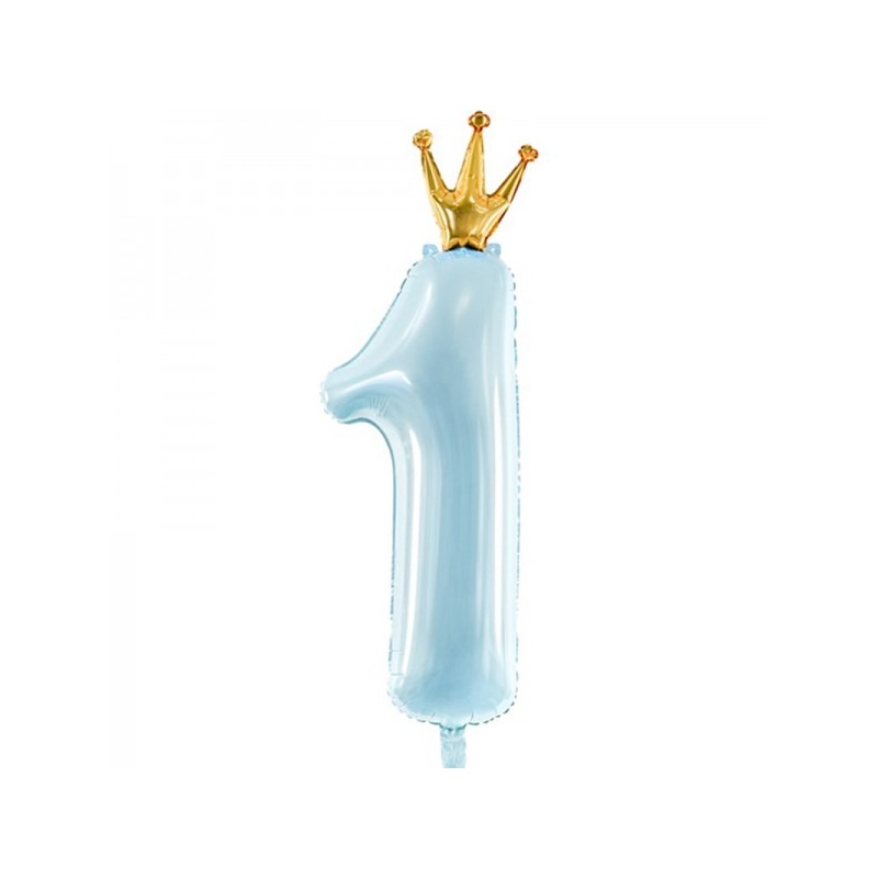 Μπαλόνι Foil Νούμερο 1 Σιέλ με Χρυσό Στέμμα