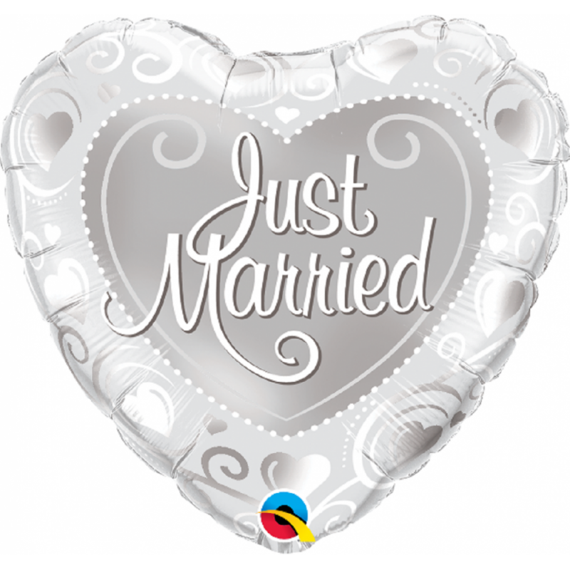 Μπαλόνι foil 18" 46cm καρδιά με μήνυμα Just Married. Η τιμή αφορά το μπαλόνι ξεφούσκωτο.