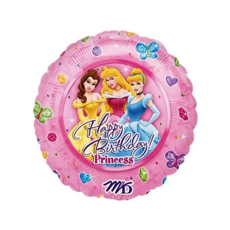 Μπαλόνι foil 9" 23cm ασυσκεύαστο με θέμα Πριγκίπισσες Disney και μήνυμα Happy Birthday. Η τιμή αφορά το μπαλόνι ξεφούσκωτο.