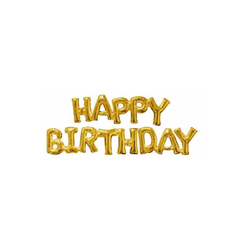Μπαλόνι Happy_Birthday Χρυσό HAPPY 30'' X 10'' 76CM X 25CM, BIRTH 26'' X 9'' 66CM X 22CM & DAY 18'' X 9'' 45CM X 22CM