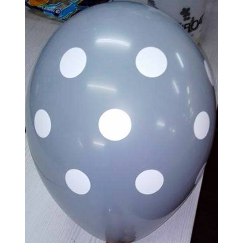 Μπαλόνι 12" σε ασημί χρώμα με λευκά πουά