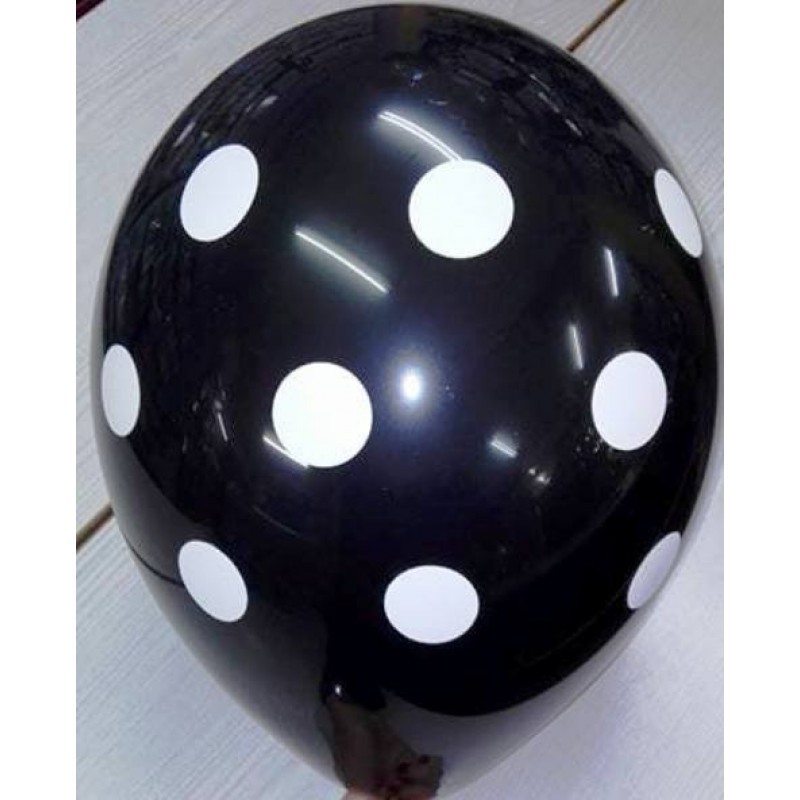 Μπαλόνι 12" σε μαύρο χρώμα με λευκά πουά