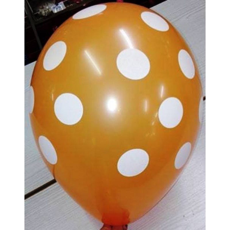 Μπαλόνι 12" σε πορτοκαλί χρώμα με λευκά πουά