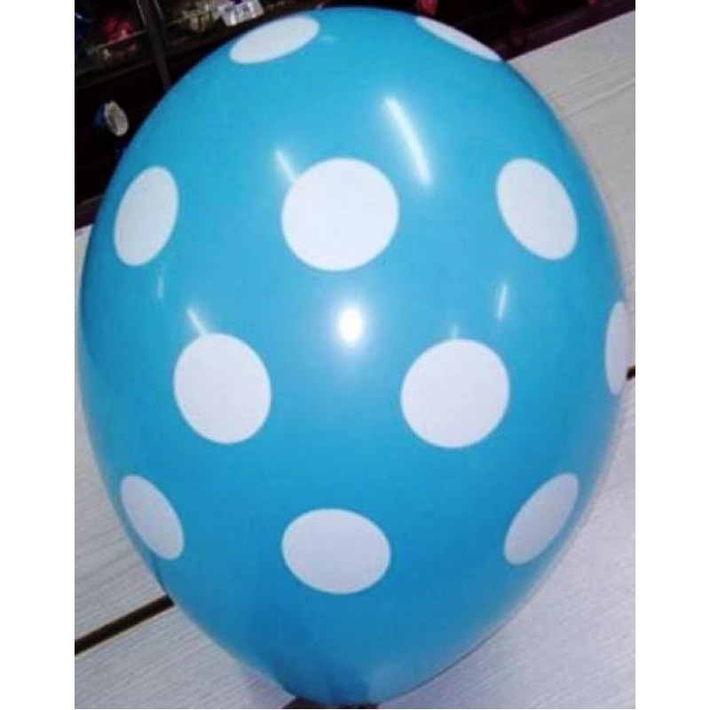 Μπαλόνι 12" σε σιέλ χρώμα με λευκά πουά