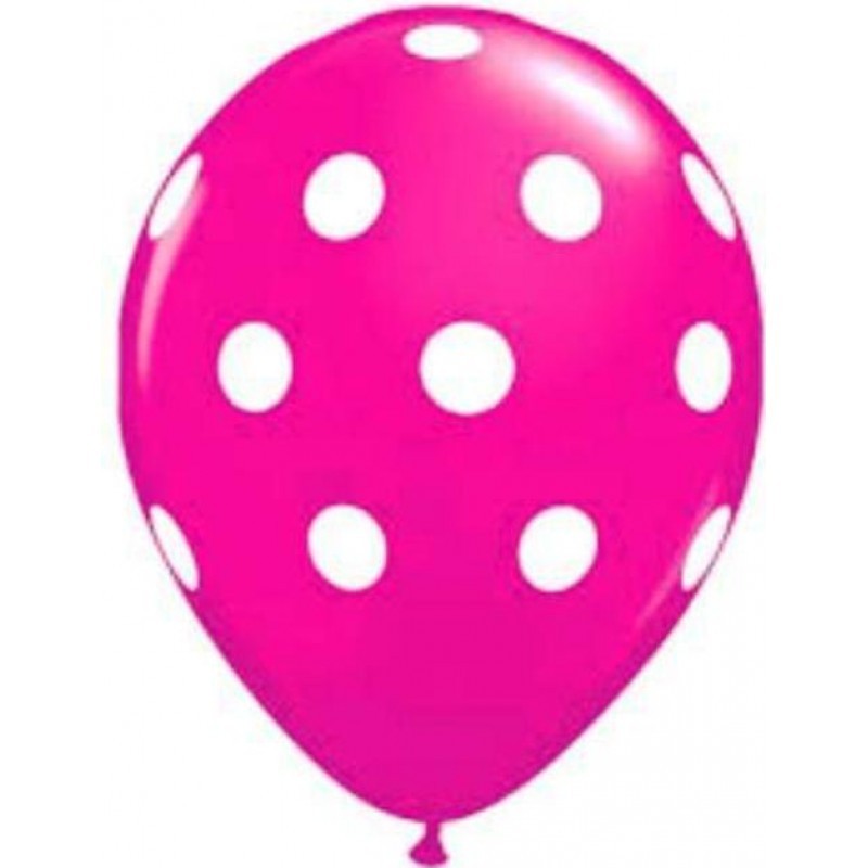 Μπαλόνι 12" σε φούξια χρώμα με λευκά πουά