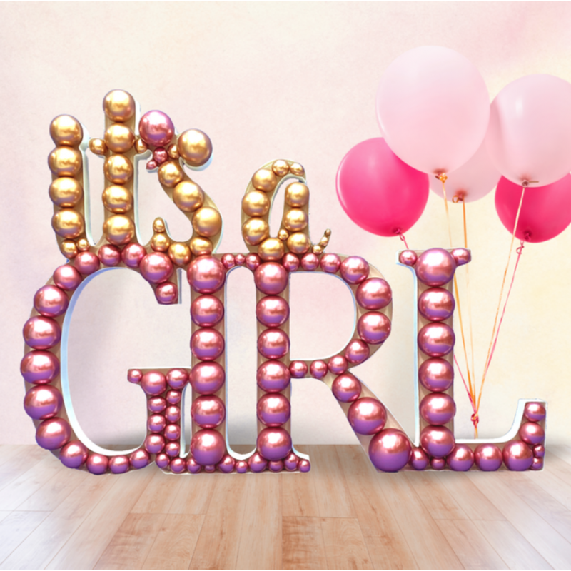 Balloon Frame, πλαίσιο για μπαλόνια από φελιζόλ και χαρτόνι σχέδιο It's a Girl διαστάσεων 100 Χ 150 εκ. Δημιουργήστε τις δικές σας συνθέσεις εύκολα. Τα μπαλόνια δεν περιέχονται στη συσκευασία.