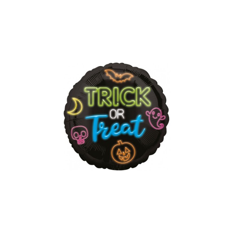 Μπαλόνι foil 17" 43cm μαύρο με μήνυμα Trick or Treat. Η τιμή αφορά το μπαλόνι ξεφούσκωτο.