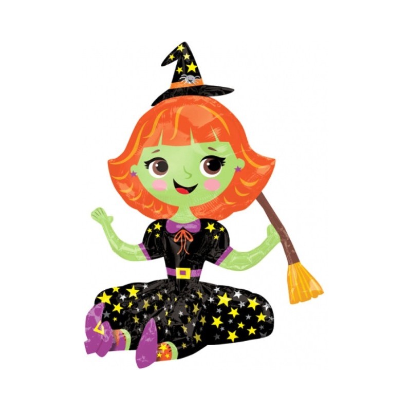 Μπαλόνι foil 16'' x 21'' 40cm x 53cm με θέμα σχήμα Καθιστή Μαγισσούλα. Η τιμή αφορά το μπαλόνι ξεφούσκωτο.