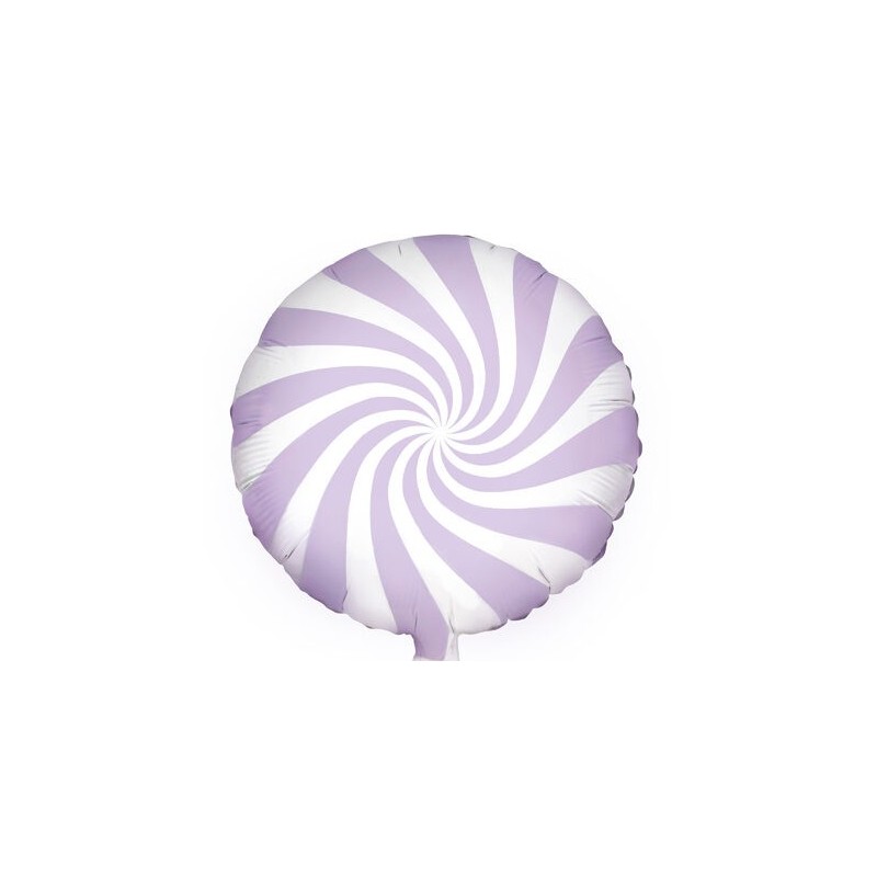 Μπαλόνι foil 18" 45cm στρογγυλό με σχέδιο Καραμέλα λιλά με άσπρο. Η τιμή αφορά το μπαλόνι ξεφούσκωτο.