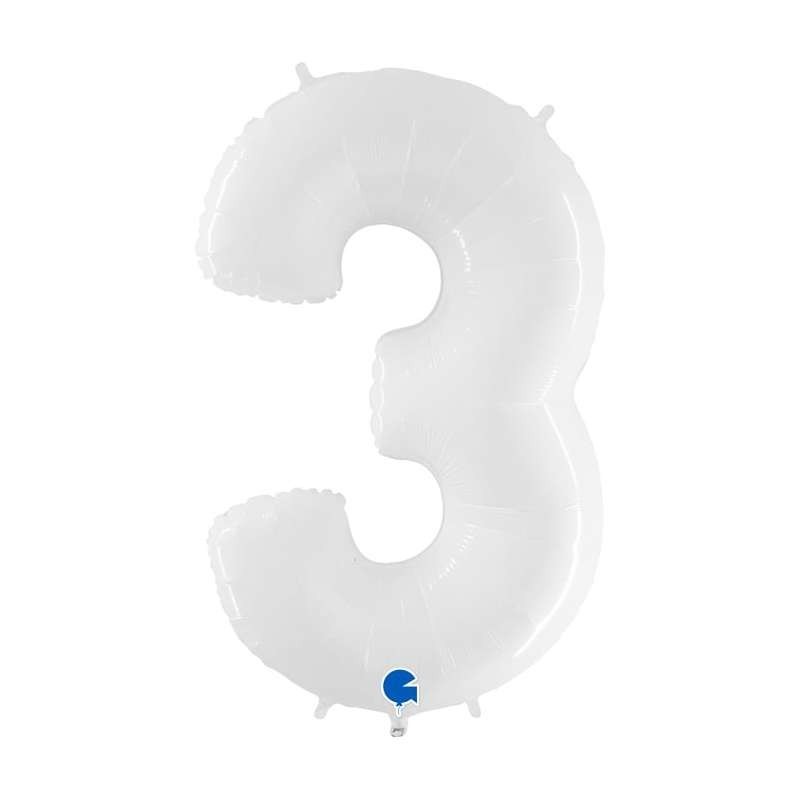 Μπαλόνι foil 40" 100cm Άσπρο Αριθμός 3. Η τιμή αφορά το μπαλόνι ξεφούσκωτο.