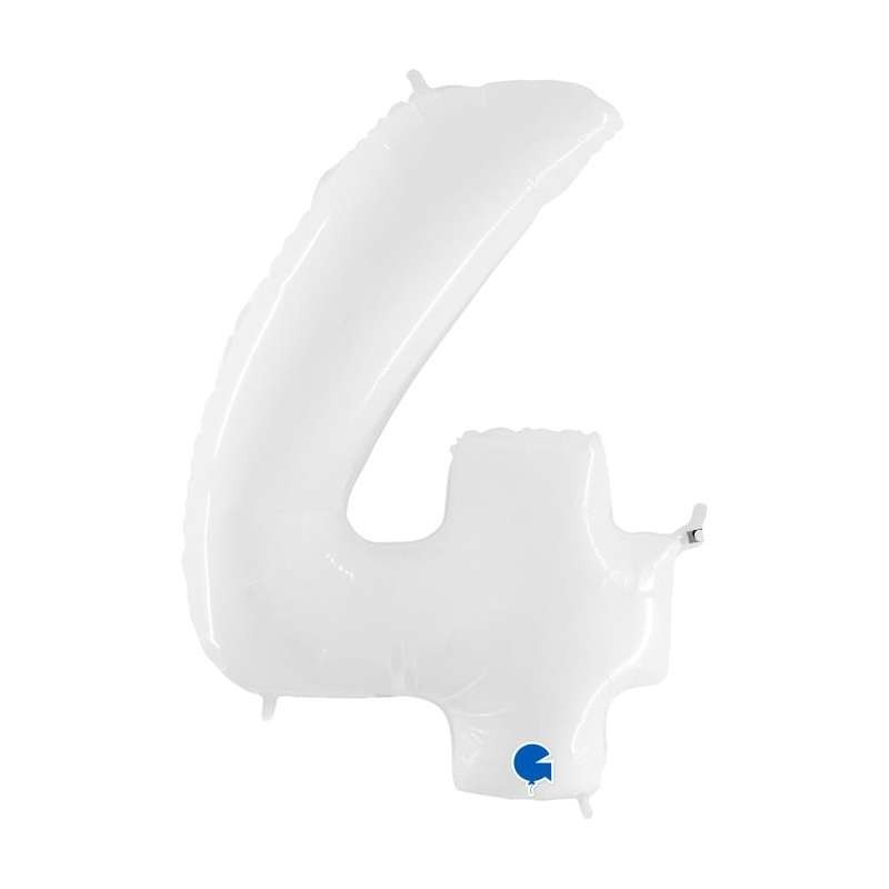 Μπαλόνι foil 40" 100cm Άσπρο Αριθμός 4. Η τιμή αφορά το μπαλόνι ξεφούσκωτο.