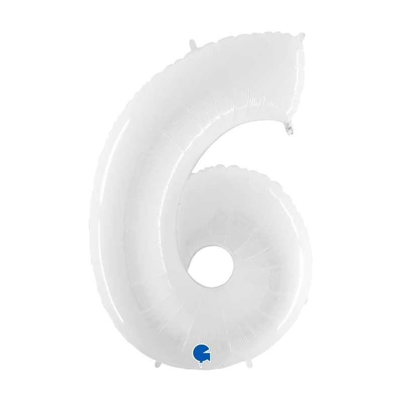 Μπαλόνι foil 40" 100cm Άσπρο Αριθμός 6. Η τιμή αφορά το μπαλόνι ξεφούσκωτο.