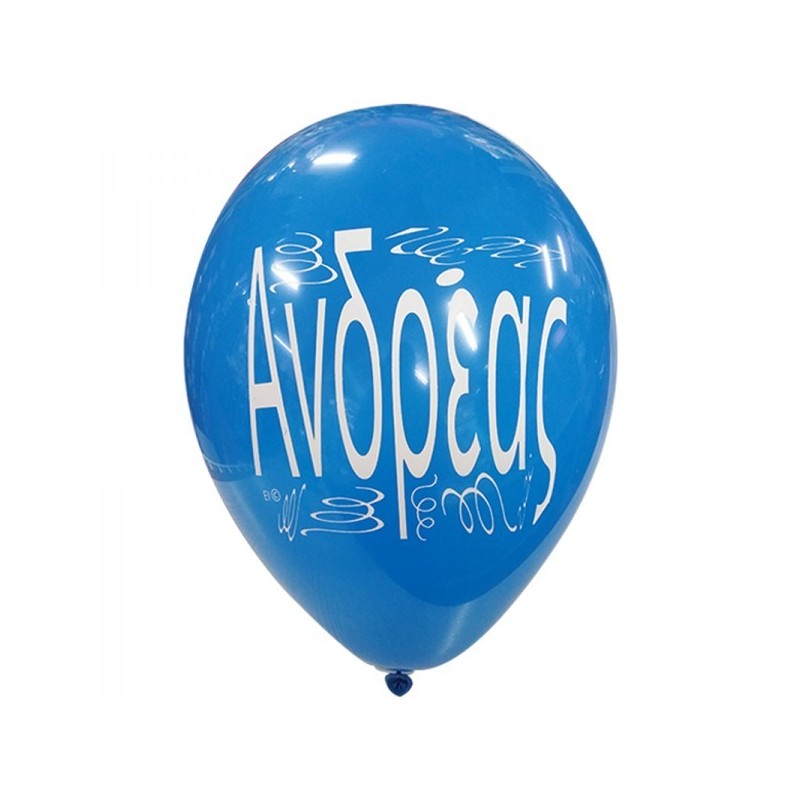 Μπαλόνια λάτεξ 12" 30cm τυπωμένα με το όνομα Ανδρέας. Διατίθενται σε διάφορα χρώματα, η επιλογή χρωμάτων γίνεται τυχαία. Η τιμή αφορά τα μπαλόνια ξεφούσκωτα.