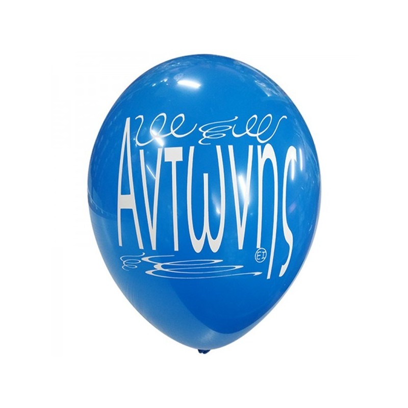 Μπαλόνια λάτεξ 12" 30cm τυπωμένα με το όνομα Αντώνης. Διατίθενται σε διάφορα χρώματα, η επιλογή χρωμάτων γίνεται τυχαία. Η τιμή αφορά τα μπαλόνια ξεφούσκωτα.