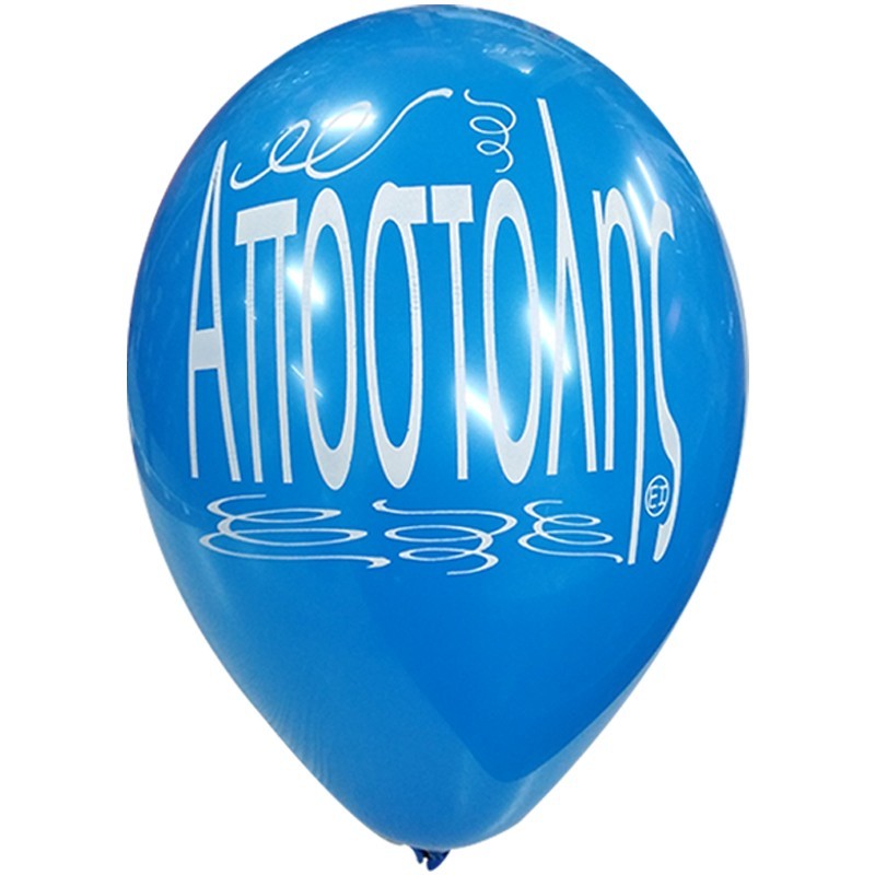 Μπαλόνια λάτεξ 12" 30cm τυπωμένα με το όνομα Αποστόλης. Διατίθενται σε διάφορα χρώματα, η επιλογή χρωμάτων γίνεται τυχαία. Η τιμή αφορά τα μπαλόνια ξεφούσκωτα.