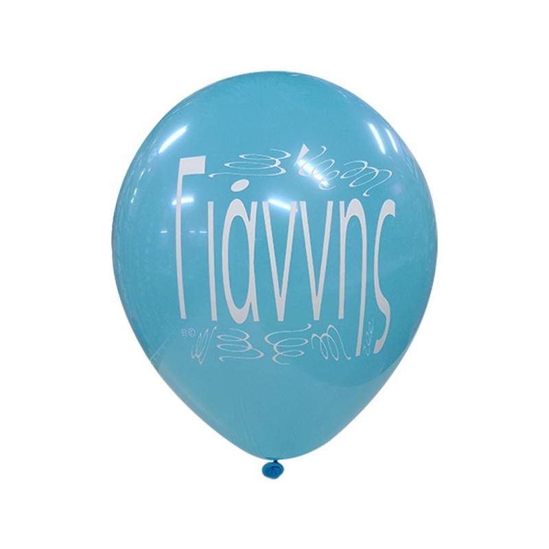 Μπαλόνια λάτεξ 12" 30cm τυπωμένα με το όνομα Γιάννης. Διατίθενται σε διάφορα χρώματα, η επιλογή χρωμάτων γίνεται τυχαία. Η τιμή αφορά τα μπαλόνια ξεφούσκωτα.