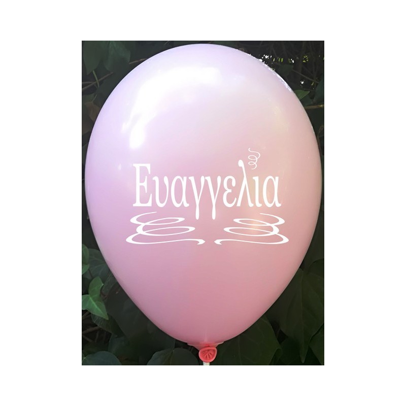 Μπαλόνια λάτεξ 12" 30cm τυπωμένα με το όνομα Ευαγγελία. Διατίθενται σε διάφορα χρώματα, η επιλογή χρωμάτων γίνεται τυχαία. Η τιμή αφορά τα μπαλόνια ξεφούσκωτα.