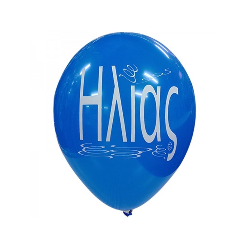 Μπαλόνια λάτεξ 12" 30cm τυπωμένα με το όνομα Ηλίας. Διατίθενται σε διάφορα χρώματα, η επιλογή χρωμάτων γίνεται τυχαία. Η τιμή αφορά τα μπαλόνια ξεφούσκωτα.