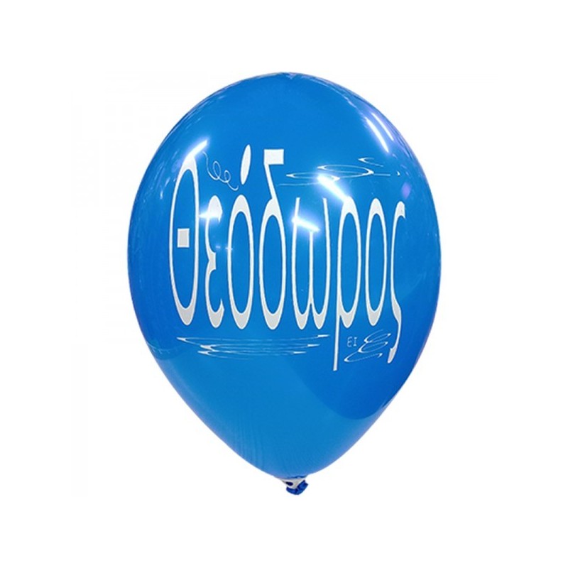 Μπαλόνια λάτεξ 12" 30cm τυπωμένα με το όνομα Θεόδωρος. Διατίθενται σε διάφορα χρώματα, η επιλογή χρωμάτων γίνεται τυχαία. Η τιμή αφορά τα μπαλόνια ξεφούσκωτα.