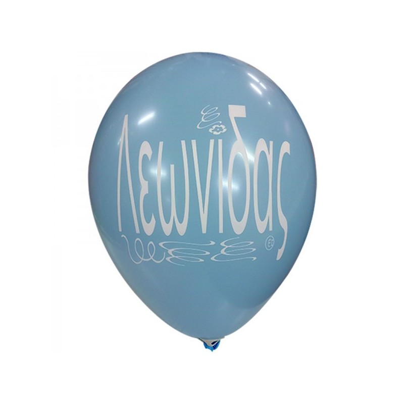 Μπαλόνια λάτεξ 12" 30cm τυπωμένα με το όνομα Λεωνίδας. Διατίθενται σε διάφορα χρώματα, η επιλογή χρωμάτων γίνεται τυχαία. Η τιμή αφορά τα μπαλόνια ξεφούσκωτα.