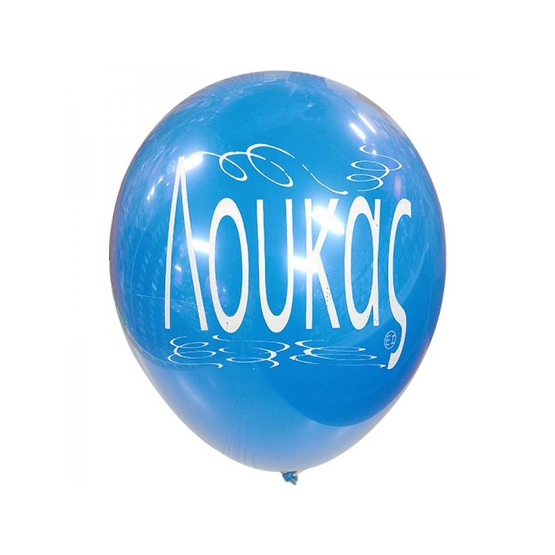 Μπαλόνια λάτεξ 12" 30cm τυπωμένα με το όνομα Λουκάς. Διατίθενται σε διάφορα χρώματα, η επιλογή χρωμάτων γίνεται τυχαία. Η τιμή αφορά τα μπαλόνια ξεφούσκωτα.