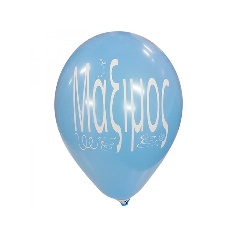 Μπαλόνια λάτεξ 12" 30cm τυπωμένα με το όνομα Μάξιμος. Διατίθενται σε διάφορα χρώματα, η επιλογή χρωμάτων γίνεται τυχαία. Η τιμή αφορά τα μπαλόνια ξεφούσκωτα.