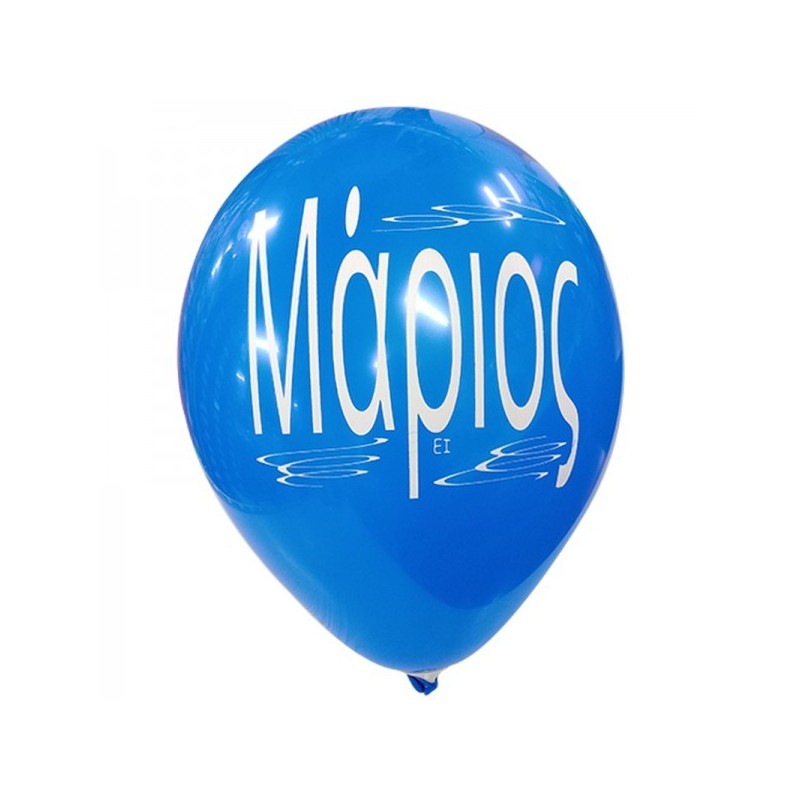 Μπαλόνια λάτεξ 12" 30cm τυπωμένα με το όνομα Μάριος. Διατίθενται σε διάφορα χρώματα, η επιλογή χρωμάτων γίνεται τυχαία. Η τιμή αφορά τα μπαλόνια ξεφούσκωτα.