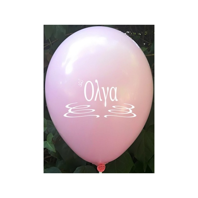 Μπαλόνια λάτεξ 12" 30cm τυπωμένα με το όνομα Όλγα. Διατίθενται σε διάφορα χρώματα, η επιλογή χρωμάτων γίνεται τυχαία. Η τιμή αφορά τα μπαλόνια ξεφούσκωτα.