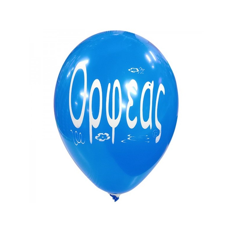 Μπαλόνια λάτεξ 12" 30cm τυπωμένα με το όνομα Ορφέας. Διατίθενται σε διάφορα χρώματα, η επιλογή χρωμάτων γίνεται τυχαία. Η τιμή αφορά τα μπαλόνια ξεφούσκωτα.
