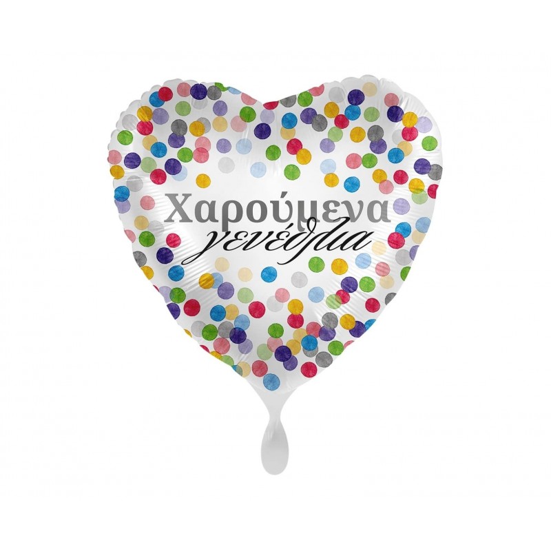 Μπαλόνι foil 17" 43cm καρδιά άσπρη με πολύχρωμα κομφετί και μήνυμα Χαρούμενα Γενέθλια. Η τιμή αφορά το μπαλόνι ξεφούσκωτο.