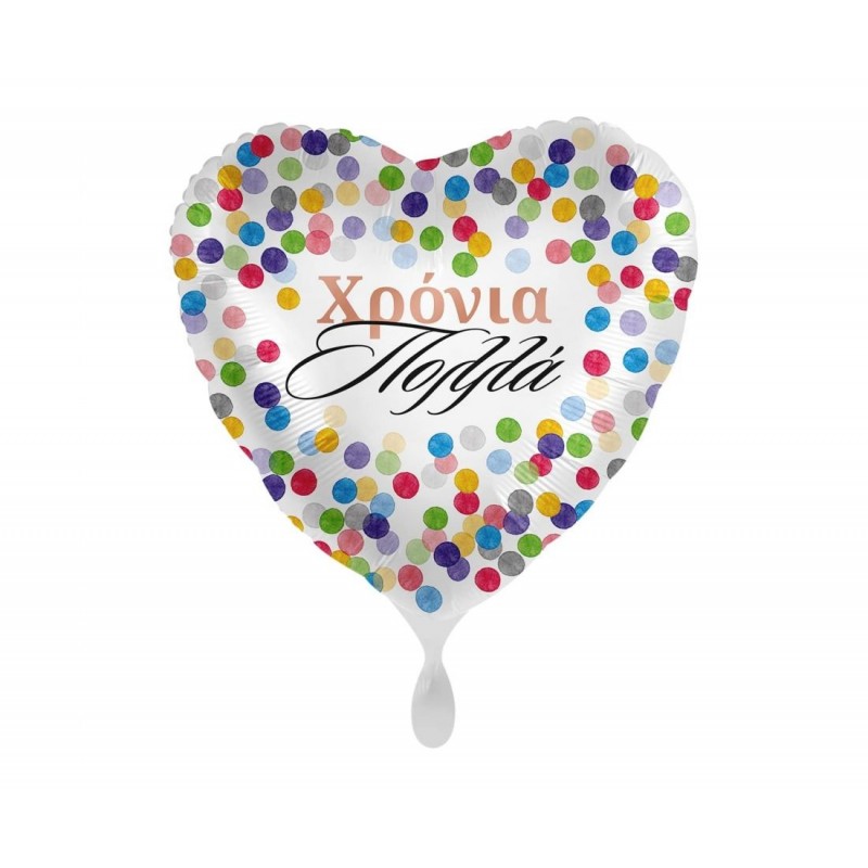 Μπαλόνι foil 17" 43cm καρδιά άσπρη με πολύχρωμα κομφετί και μήνυμα Χρόνια Πολλά. Η τιμή αφορά το μπαλόνι ξεφούσκωτο.
