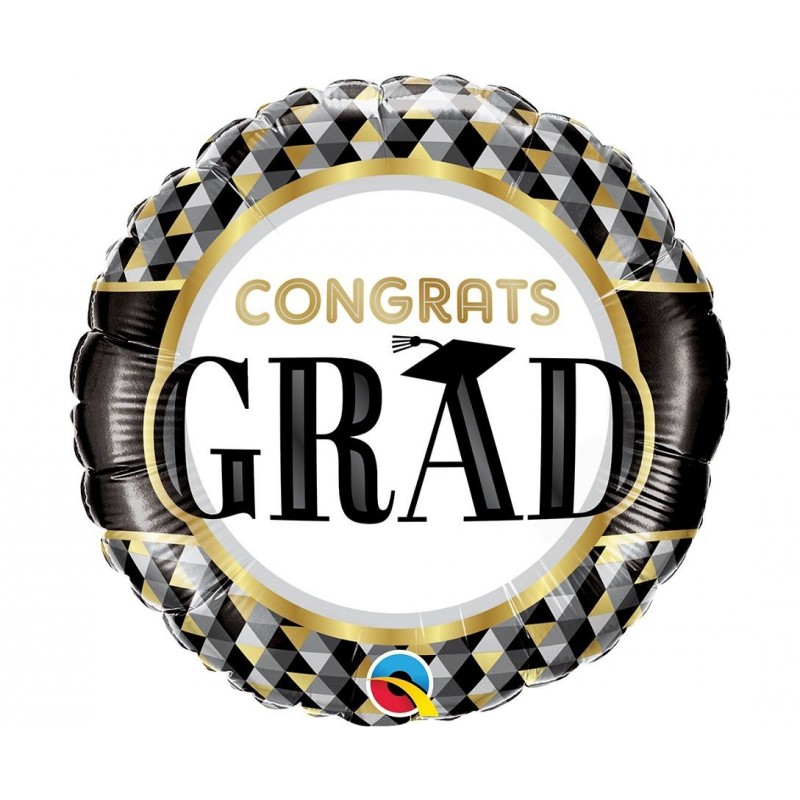 Μπαλόνι foil 18" 46cm χρυσό μαύρο κι άσπρο με μήνυμα Congrats Grad. Η τιμή αφορά το μπαλόνι ξεφούσκωτο.