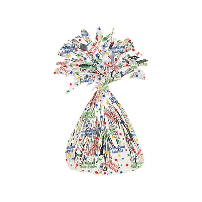 Βαρίδι 170 γραμμάρια ασημί με μήνυμα Happy Birthday για μπαλόνια με ήλιον.