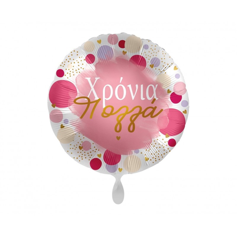 Μπαλόνι foil 17" 43cm πουά ροζ και χρυσό με μήνυμα Χρόνια Πολλά. Η τιμή αφορά το μπαλόνι ξεφούσκωτο.