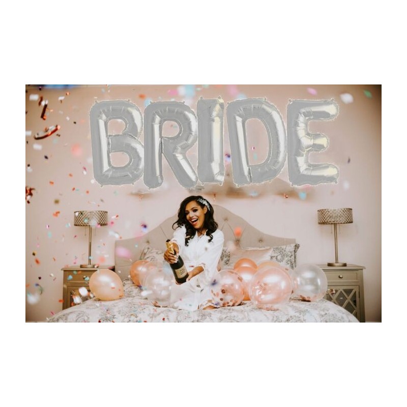 Μπαλόνι foil 85cm γράμματα Bride ασημί. Η τιμή αφορά το μπαλόνι ξεφούσκωτο.