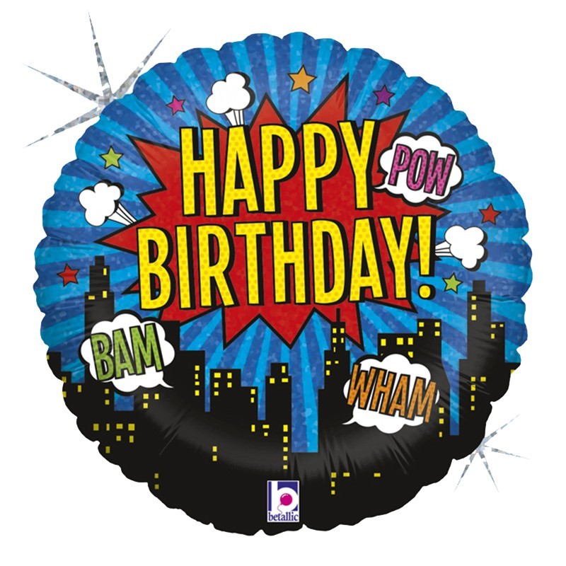 Μπαλόνι foil 18" 46cm με θέμα Super Hero και μήνυμα Happy Birthday. Η τιμή αφορά το μπαλόνι ξεφούσκωτο.