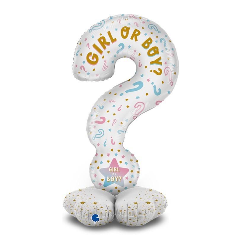 Μπαλόνι foil 47" 119cm σε σχήμα ερωτηματικό με μήνυμα Boy Or Girl? και βάση τετραπλή καρδιά. Η τιμή αφορά το μπαλόνι ξεφούσκωτο.