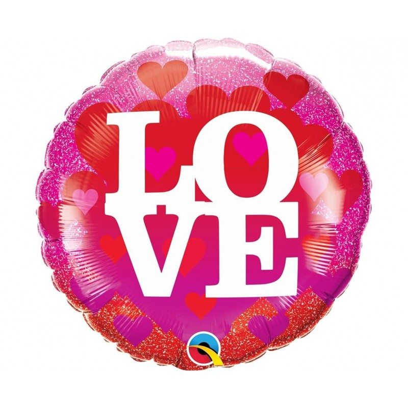 Μπαλόνι foil 18" 46cm με καρδιές και γκλίτερ με μήνυμα Love. Η τιμή αφορά το μπαλόνι ξεφούσκωτο.