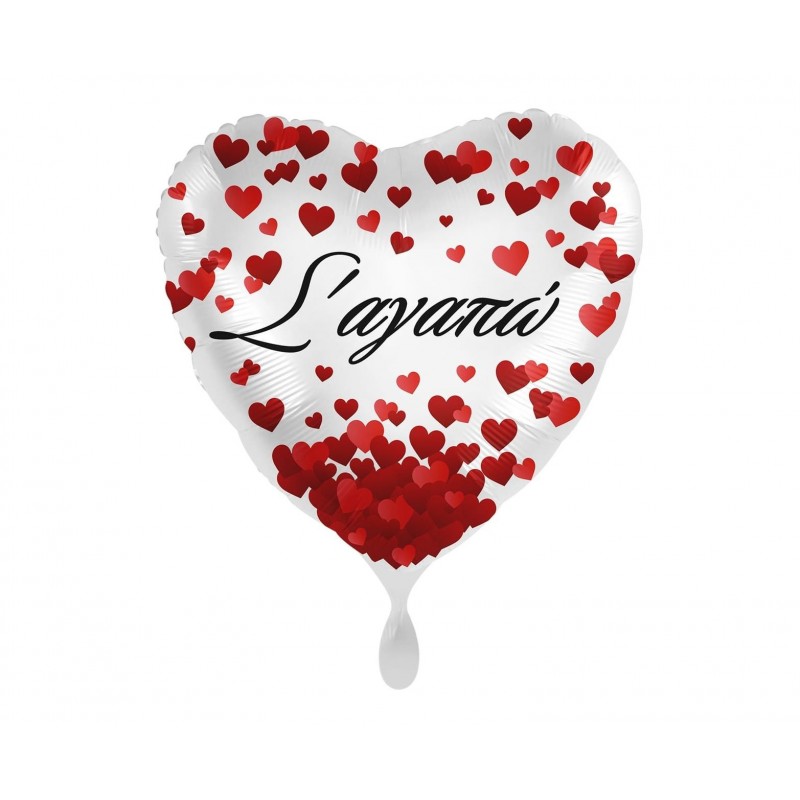 Μπαλόνι foil 17" 43cm σε σχήμα καρδιάς άσπρο με κόκκινες καρδιές και μήνυμα Σ'Αγαπώ. Η τιμή αφορά το μπαλόνι ξεφούσκωτο.