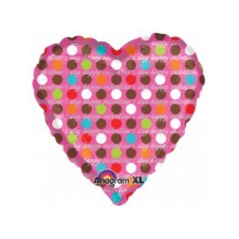 Μπαλόνι foil 18" 46cm σε σχήμα καρδιάς ροζ με πολύχρωμα πουά και μήνυμα Happy Valentines's Day. Η τιμή αφορά το μπαλόνι ξεφούσκωτο.