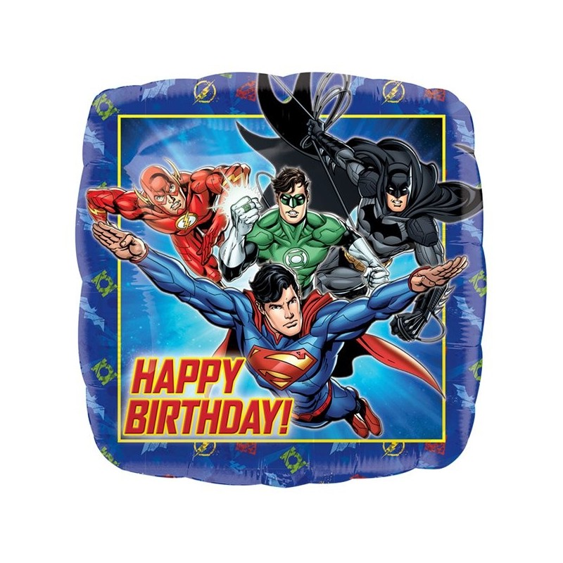 Μπαλόνι foil 17" 43cm με θέμα Justice League και μήνυμα Happy Birthday. Η τιμή αφορά το μπαλόνι ξεφούσκωτο.