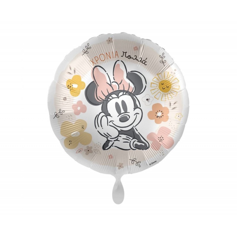 Μπαλόνι Φοιλ 17" 43 εκ. με Vintage θέμα Minnie Mouse και μήνυμα Χρόνια Πολλά. Η τιμή αφορά το μπαλόνι ξεφούσκωτο.